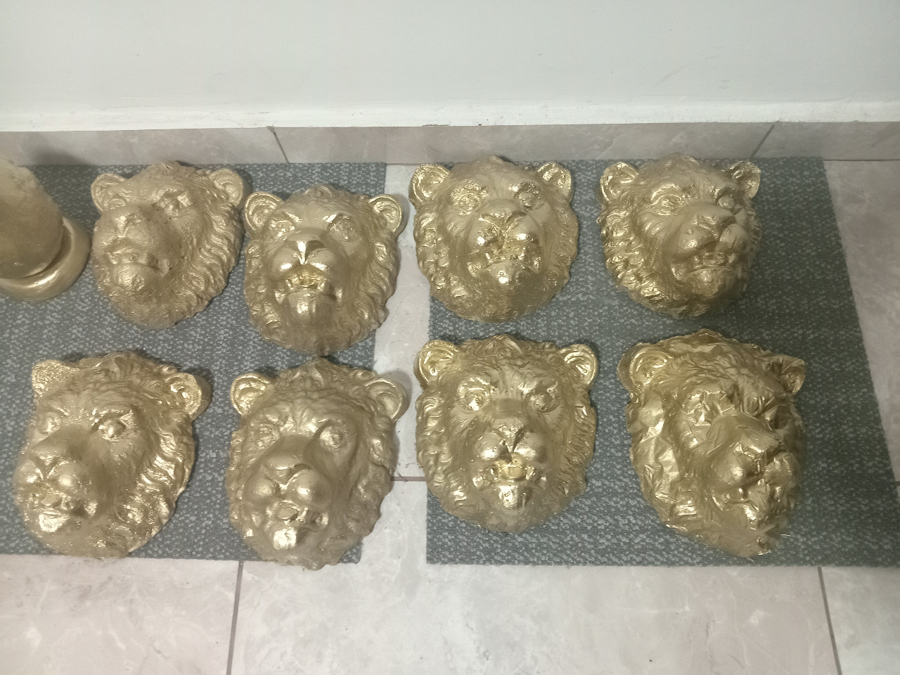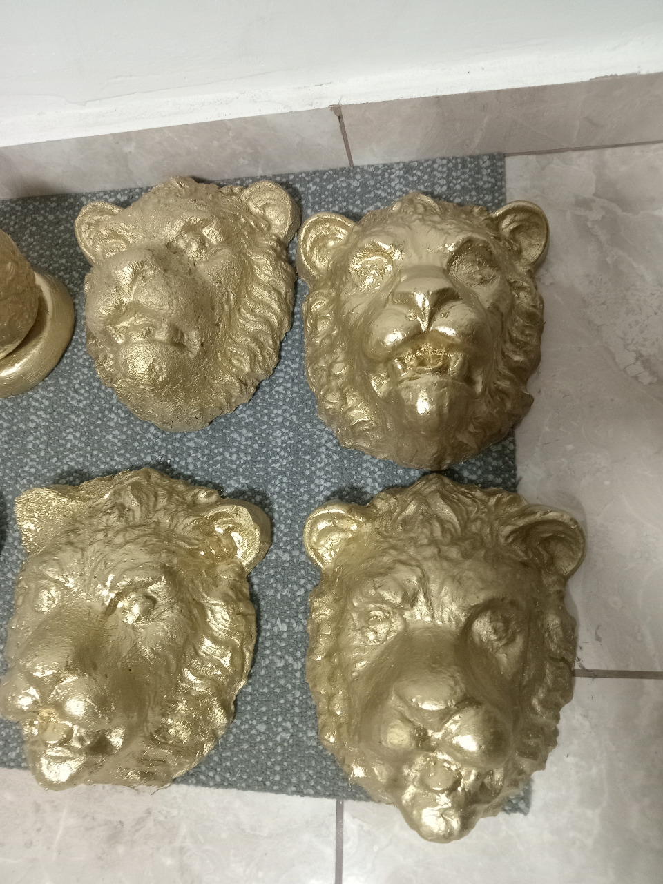caras de leon doradas de hormigon tiene gancho para colgar, para poner en exterior e interior ,jardin,etc promoción aprox. 23x22anchox14profundidad cm: $7.000